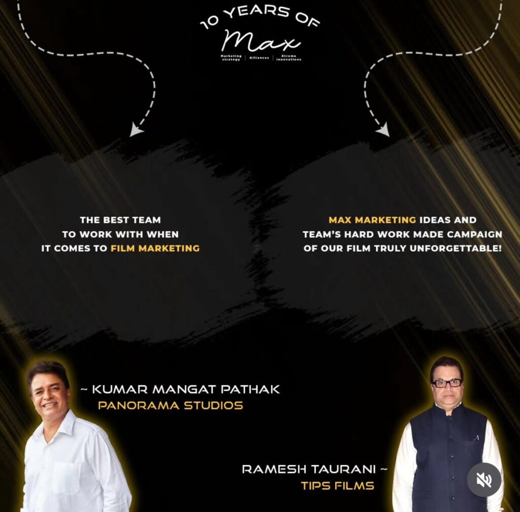 Ramesh Taurani of Tips Films says, “Max Marketing ideas and team’s hardwork made campaign of our film truly unforgettable.”