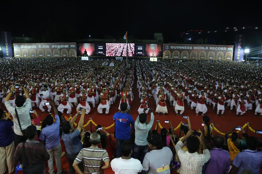 இந்த பிரம்மாண்ட உலக சாதனை நிகழ்வில் தமிழகத்தின் பல்வேறு பகுதிகள் மட்டுமின்றி மும்பை, டில்லி, பெங்களூரு மற்றும் மலேசியா போன்ற பல இடங்களில் இருந்து கிட்டதட்ட 5000 மாணவர்கள் திருக்குறள் பாடலுக்கு தொடர்ந்து 26 நிமிடம் நடனமாடி கின்னஸ் சாதனை படைத்தனர்.