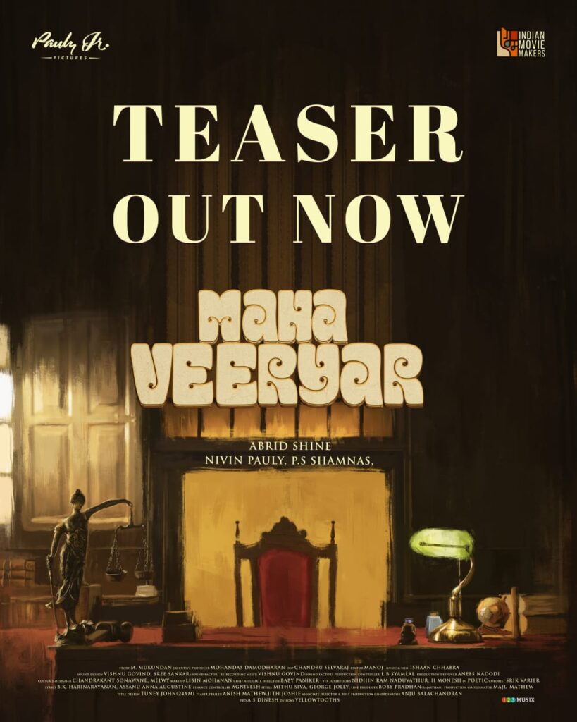 நடிகர் நிவின் பாலி நடிப்பில், பெரிதும் எதிர்பார்க்கப்பட்ட “மஹாவீர்யார்” படத்தின் டீசர் இன்று வெளியிடப்பட்டது. அப்ரித் ஷைனி இயக்கியிருக்கும் இந்தப் படத்தை Pauly Jr Pictures மற்றும் Indian Movie Makers சார்பில் நிவின் பாலி, PS சம்னாஸ் தயாரித்துள்ளனர். இப்படத்தில் நிவின் பாலி, ஆசிப் அலி, லாலு அலெக்ஸ், சித்திக், ஷான்வி ஸ்ரீவஸ்தவா, விஜய் மேனன், மேஜர் ரவி, மல்லிகா சுகுமாரன், சுதிர் கரமனா, கிருஷ்ண பிரசாத், பத்மராஜ் ரதீஷ், சுதீர் பரவூர், கலாபவன் பிரஜோத், பிரமோத் வெளியநாட், ஷைலஜா P அம்பு முக்கிய வேடங்களில் நடித்துள்ளனர்.