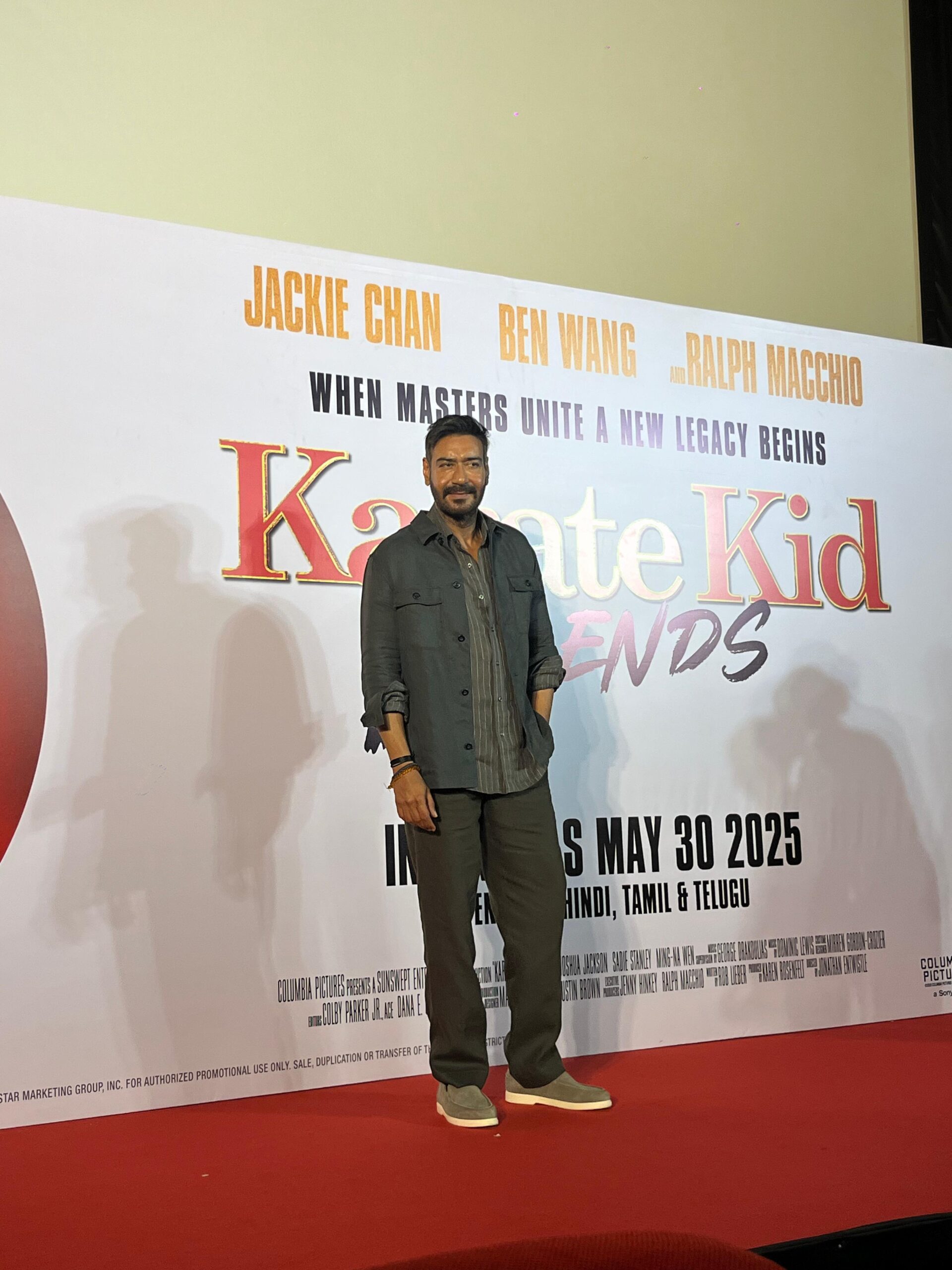 மும்பையில் நடைபெற்ற ஒரு பிரமாண்ட நிகழ்வில், பாலிவுட் நடிகர் அஜய் தேவ்கன் மற்றும் அவரது மகன் யுக் தேவ்கன் இணைந்து சோனி பிக்சர்ஸ் என்டர்டெயின்மென்ட் இந்தியா தயாரித்த ‘கராத்தே கிட்: லெஜண்ட்ஸ்’ திரைப்படத்தின் ஹிந்தி டிரெய்லரை வெளியிட்டனர். இவ்விருவரும் முதன்முறையாக ஒரு சர்வதேச திரைப்படத்துக்காக இணைந்து பணியாற்றியுள்ளனர். அஜய் தேவ்கன், ஜாக்கி சான் நடித்த மிஸ்டர் ஹான் என்ற கதாபாத்திரத்திற்கு குரல் கொடுத்துள்ள நிலையில், யுக் தேவ்கன் பென் வாங் நடித்த லி ஃபாங் என்ற கதாபாத்திரத்திற்கு குரல் கொடுத்து அறிமுகமாகிறார்.