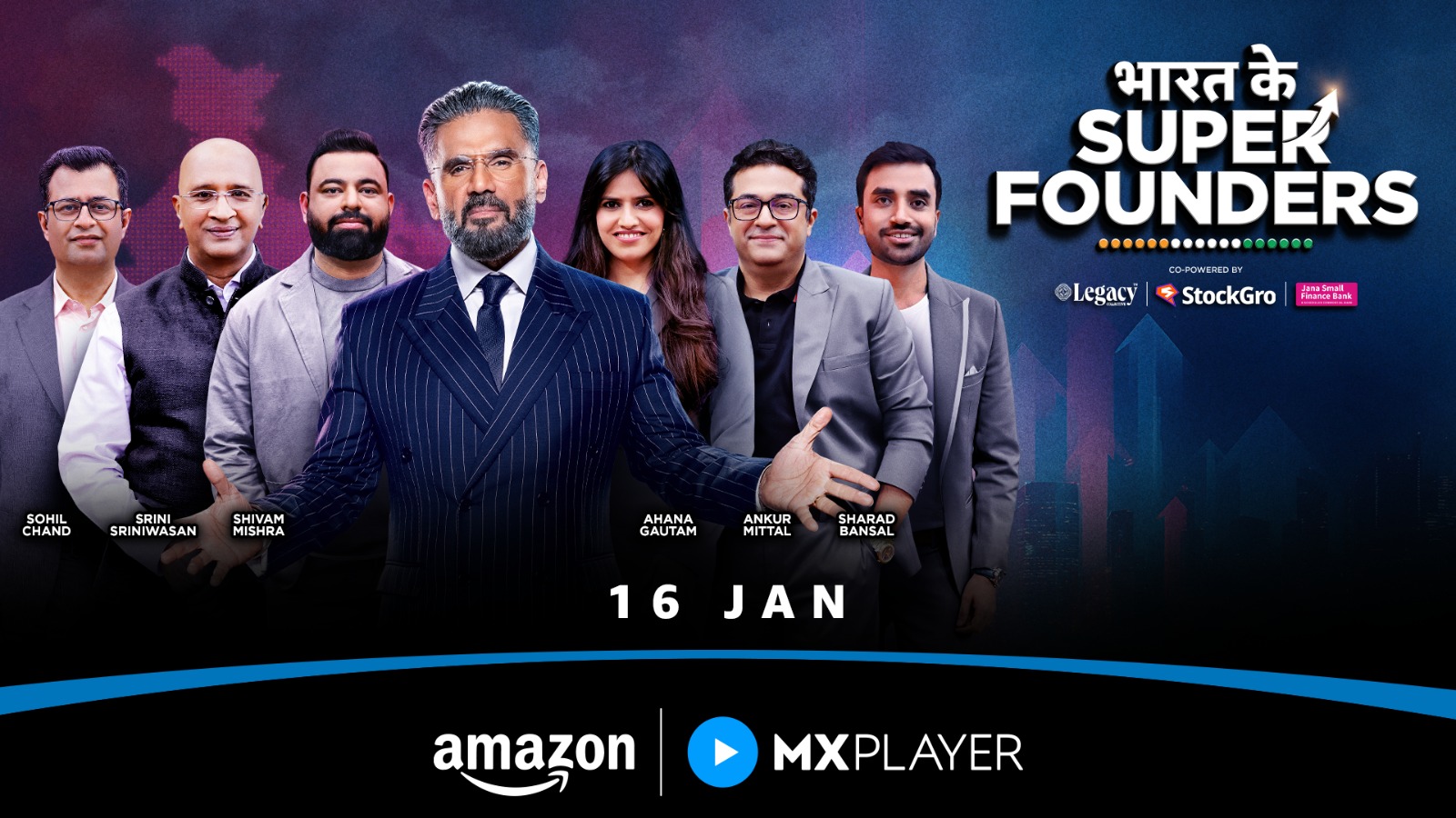 MUMBAI, India– 12th January, 2026: Amazon MX Player, Amazon’s free video streaming service, today unveiled the trailer of its upcoming entrepreneurial reality series, Bharat Ke Super Founders, offering an exciting glimpse into a high-stakes pitch room where ambition is tested, ideas are scrutinised, and real investment decisions are made. Streaming from 16th January 2026 for free on the service, the show is hosted and mentored by Suniel Shetty, bringing together an illustrious panel of business tycoons to back India’s next wave of entrepreneurs who are building with clarity, discipline, and long-term vision. Produced by Rusk Media and Recur Club, Bharat Ke Super Founders is co-powered by StockGro and Legacy Collective with Jana Small Finance Bank as the Start Up Banking Partner, OnePlus Pad3 as the productivity partner and Bowlers as the Pet Food Partner.