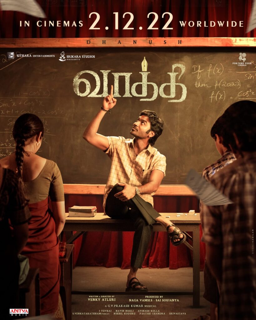 தனுஷின் பின்புறம் உள்ள கரும்பலகையில், பல்வேறு கணித சமன்பாடுகள் மற்றும் அவரது அருகில் ஒரு புத்தகமும் வைக்கப்பட்டிருந்தது. தனுஷ் தன்னுடைய சாதாரண தோற்றத்தில் மிக எளிமையாக காணப்பட்டார். தேதியை குறித்துக் கொள்ளுங்கள், வாத்தி வருகிறார் பாடம் எடுக்க, 2ம் டிசம்பர் 2022 முதல் என்பதனை படக்குழுவினர் அந்த போஸ்டரில் குறிப்பிட்டிருந்தனர்.