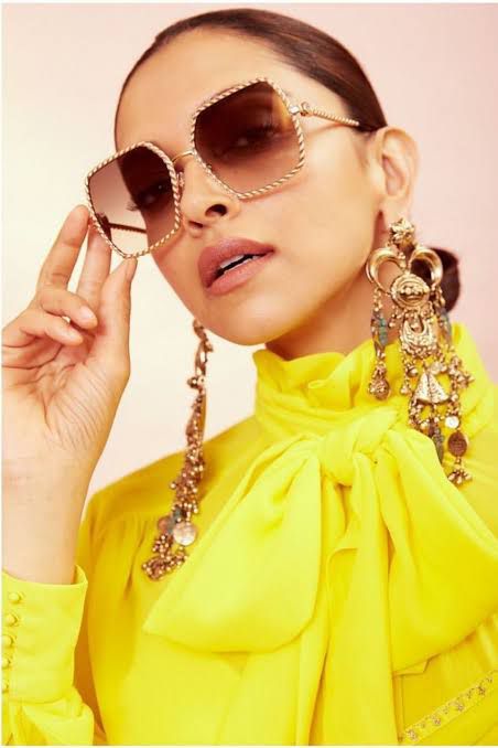 *Deepika Padukone:* Always the trendsetter, Deepika was recently spotted in wide-framed Elie Saab tinted shades with metallic rims. Valued between ₹35–45K, these striking frames perfectly complement her bold, confident aura and timeless appeal.