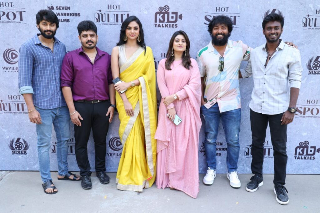Directed by Vignesh Karthik and produced by K J Balamani Marban and Suresh Kumar under the banner of KJB Talkies and 7 Warrior Films and presented by Dinesh Kannan of Sixer Entertainment, Hot Spot is a film that talks about the unspoken sides of male-female relationships. As the film is slated to hit the screens on March 29, the film’s press meet was held in the presence of the Media as well as the film crew.