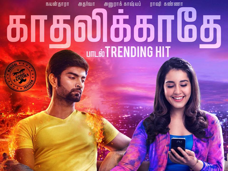 இந்நிலையில் தனது காதல் தோல்விக்கு கதாநாயகியை தாக்காமல் , நெருங்கிய நண்பரை திட்டும் பாடல் வெளியாகி இளைஞர்கள் மத்தியில் பெரும் வரவேற்பை பெற்றுவருகிறது. அதர்வா கதாநாயகனாக நடிக்கும் ‘இமைக்கா நொடிகள்’ படத்தில் நயன்தாரா ஒரு முக்கிய கதாபாத்திரத்தில் நடித்துள்ளார். இப்படத்தின் ‘காதலிக்காதே’ பாடல் சில தினங்களுக்கு முன் ரிலீஸ் செய்யப்பட்டது. இது காதல் தோல்விக்கு காரணமாக இருக்கும் ஒரு நண்பனை கதாநாயகன் மனதார திட்டும் பாடலாகும். பாடலின் இந்த சூழ்நிலையும் சுவாரஸ்யமான இசையமைப்பும் இப்பாடலை இளைஞர்கள் மத்தியில் மாபெரும் ஹிட்டாக்கியுள்ளது. நாளுக்கு நாள் புதிய உயரங்களை தொட்டுக்கொண்டிருக்கும் ஹிப் ஹாப் தமிழா ஆதியின் இசையமைப்பில் இப்படம் உருவாகிவருகிறது. அவரது ஹிட் வரிசையில் ‘காதலிக்காதே’ பாடல் இடம் பிடித்துள்ளது. அஜய் ஞானமுத்து இயக்கத்தில் உருவாகிவரும் இந்த திரில்லர் படத்தில் பிரபல பாலிவுட் இயக்குனர் அனுராக் காஷ்யப் வில்லின் கதாபாத்திரத்தில் நடித்துள்ளார். அதர்வாவுக்கு ஜோடியாக ராஷி கண்ணா நடித்துள்ளார். ‘Cameo Films’ C J ஜெயக்குமார் இப்படத்தை தயாரித்துள்ளார்.