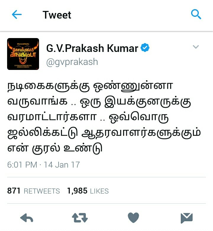 இதற்கு பதில் அடி கொடுக்கும் வகயில் தான் ஜி.வி.பிரகாஷ் தன் ட்விட்டர் பகுதியில் பெண்ணுக்கு வரிந்து கத்தி வருபவர்கள் ஒரு ஆண் இயக்குனரை போலீஸ் அடிக்கும் எங்கே சென்று இருந்தீர்கள் என்று மூர்த்தி சிறிது என்றாலும் கீர்த்தி பெருசு என்று நிருபித்துவிட்டார் ஜி.வி.பிரகாஷ் நடிகைன்ன வருவிங்க இயக்குனருன்ன வரமாட்டுறாங்க என் கேள்வி எழுப்பி உள்ளார் .