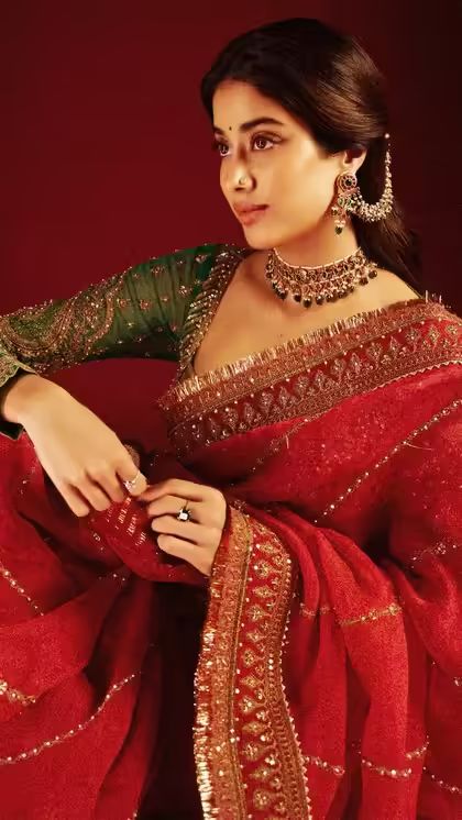 *Janhvi Kapoor:* Janhvi Kapoor leaves half her hair open and pins the upper half from the sides to give an elegant yet generous look. She pairs her ethnic ensemble with traditional earrings with ear chain, which also makes for a classy hair accessory.