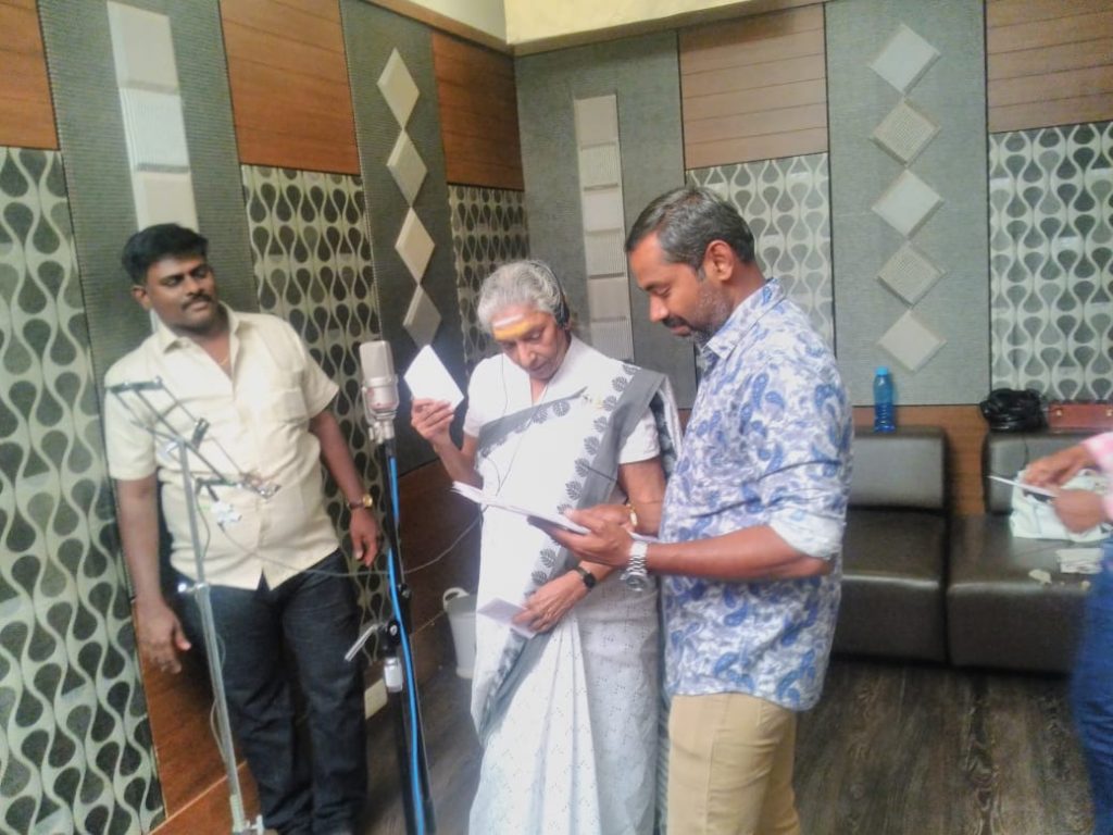 ” இப்படத்தில் வரும் ஒரு பாடல் மகிழ்ச்சி, துயரம் என இரு வேறு வடிவங்களில் இருக்க வேண்டும் இதற்கு நான் ஜானகியம்மாவைப் பாட வைப்பதை ஒரு கனவு போல எண்ணியிருந்தேன். அவர் சினிமாவை விட்டு விலகி விட்டேன் என்றதும் சற்றே அதிர்ச்சியாகவே இருந்தது.. நாங்கள் ஜானகி அம்மாவிடம் நீங்கள் தான் பாட வேண்டும் என்று கேட்டேன் அதற்கு நீங்கள் வேறு யாராவது புதியவர்களுக்கு வாய்ப்பு கொடுங்களேன். என்னை விட்டு விடுங்கள் என்றார். நாங்கள் விடாமல் நச்சரித்தோம். விடுவதாக இல்லை. ஒரு கட்டத்தில் எங்கள் தொல்லை தாங்காமல் என்ன வரிகள் என்றார் நான் ‘ஒன் உசிரு காத்துல காத்தாடியா பறக்குறேன் ‘என முதல்வரியைச் சொன்னேன். புன்முறுவல் செய்தார். அப்பாடா என்றிருந்தது. முதலில் சோகப் பாடலைப் பாடியவர் ,டூயட் பாடுவது ஆண் குரல் யார் என்றார். நான் டிராக் பாடி இருந்ததைப் போட்டுக் காட்டினேன். என் குரல் அவருக்குப் பிடித்து விடவே நீயே பாடு என்றார். இல்லம்மா நான் சும்மா டம்மிவாய்ஸ் க்காகப் பாடினேன் என்றேன். வேறு யாரையாவது வைத்துப் பாடவைப்பதே திட்டம் என்றேன். ஆனால் நீயே பாடு என்றார் .ஒரு கட்டத்தில் நீ பாடினால் தான் நான் பாடுவேன் என்றார் பிடிவாதமாக . சரி என்றேன். மகிழ்ச்சி, சோகம் என இரண்டு பாடல்களையும் ஒரே டேக்கில் பாடிக் கொடுத்தார்.அத்துடன் படக் குழுவையும் வாழ்த்தினார். 80 வயதில் சற்றும் உற்சாகம் குறையாமல் அவர் பாடிக்கொடுத்தது வியப்பூட்டியது.ஜானகியம்மா எங்கள் படத்திற்குள் வந்தது எங்களுக்குப் பெரிய ஊக்கமாக இருந்தது. ” என்கிறார்.