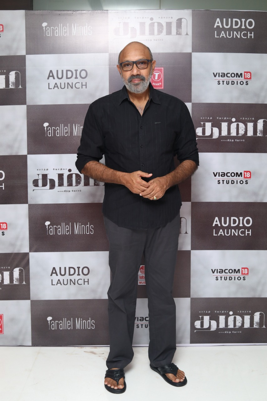 ரொம்ப நெருக்கமான படைப்பு. சத்யராஜ் மாமா, ஜோ, கார்த்தி, சூரஜ் எல்லாரும் இணைஞ்சிருக்க படம். ஒரு சின்ன கரு இவ்வளவு பெரிய படமா மாறியிருக்கிறது ஆச்சர்யமா இருக்கு. கார்த்தி இப்படி படங்கள் நம்பி பண்றது பெருமையா இருக்கு. கார்த்தி ஜோ இரண்டு பேருமே சிறந்த நடிகர்கள். கிளிசரின் போடமா என்னால அழவே முடியாது “நந்தா” படத்தில மட்டும் தான் என்னால அப்படி நடிக்க முடிஞ்சது . ஆனா கார்த்தி கிளிசரின் போடாம அத அநாயசமா பண்ணிடுறாரு. கைதி வரைக்குமே அத நான் பார்த்துட்டு இருக்கேன் ரொம்ப ஈஸியா பண்ணிடுறார். ஜீத்து ஜோசப் பாகுபலி அளவு பிரமாண்ட படத்திற்கு இணையா பாபநாசம் படத்தை இந்தியா முழுக்க கொண்டு போனவர். அவர் இந்தப்படம் செஞ்சிருக்கறது சந்தோஷம். கோவிந்த் வசந்தா நான் சந்திச்சப்போ எப்படி இருந்தாரோ அப்படியே இருக்கார். படத்தில் பாடல்கள் எல்லாம் அருமையா வந்திருக்கு. படமும் அழகா இருக்கு. எல்லோருக்கும் வாழ்த்துக்கள். இறுதியாக ரசிகர்களுக்கு உறவுகளுக்கு நாம் கார்த்தி எவ்வளவு அவசரம் இருந்தாலும் அதிகாலை பயணம் செய்வதை தவிர்த்துடுங்க, 3 மணி, 4 மணிக்கு பயணம் செய்வதால் சில தவறான சம்பவங்கள் நடந்து விடுகிறது. நாம நினவுகள் இல்லாம நம்ம கட்டுப்பாடு மீறி சில விசயங்கள் நடந்துடுது. தயவு செய்து அத தவிர்த்துடுங்க. எல்லோருக்கும் நன்றி ரீமேக் மூலம் தமிழில் அறிமுகமான இயக்குநர் ஜீத்து ஜோசப் இயக்கும் நேரடி தமிழ்ப்படம். சௌகார் ஜானகி, சத்யராஜ், நிகிலா விமல், ரமேஷ் திலக் என பிரமிக்கும் நடிகர் பட்டாளம் படம் இப்படி ரசிகர்களிடம் எதிர்பார்ப்பின் உச்சத்தை விதைத்திருக்கும் “தம்பி” படத்தின் இசை வெளியீடு இன்று நடைபெற்றது.