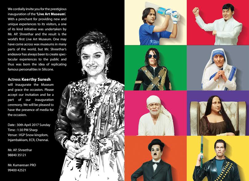 வரும் 30ம் தேதி, ஞாயிற்றுக்கிழமை, மதியம் 1.30 மணியளவில் சிலிக்கான் சிலை அருங்காட்சியகத்தை, நடிகை கீர்த்தி சுரேஷ் அவர்கள் திறந்து வைக்க இருப்பது இன்னும் சிறப்பு.