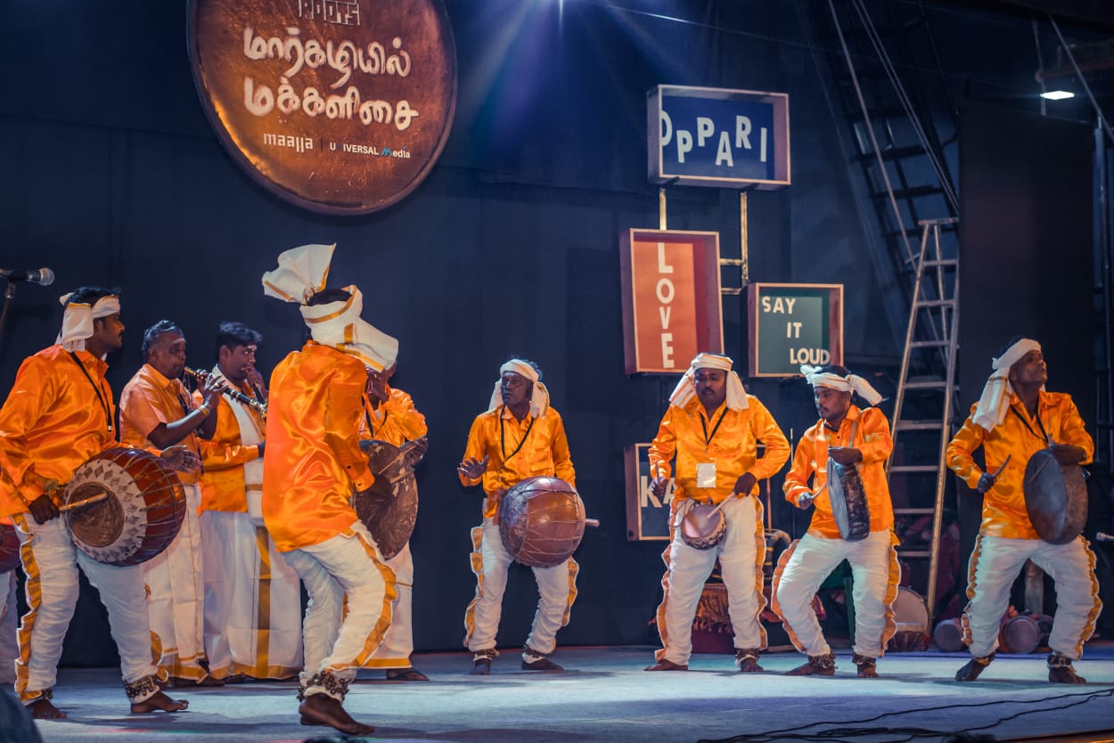 இந்த நிகழ்ச்சியினை இசையமைப்பாளர் சந்தோஷ் நாராயணன், இயக்குனர் பா. இரஞ்சித் உள்ளிட்டோர் தொடங்கிவைத்தனர். தொடர்ந்து 8 நாட்கள் நடைபெற உள்ள இந்த நிகழ்ச்சியின் முதல் நாள் நாட்டுபுறக் கலைஞர்களின் நிகழ்ச்சிகள் நடைபெற்றது. இதில் மதிப்புறு முனைவர் மதிச்சியம் பாலா, சுகந்தி, வி.எம். மஹாலிங்கம் ஆகியோர் பல்வேறு பாடல்களை பாடினர். சேலம் ஆதிமேலம் இசைக்குழுவின் இசைநிகழ்ச்சியும், வேலு ஆசான் குழுவினரின் பறை இசை நிகழ்ச்சியும் நடைபெற்றது.