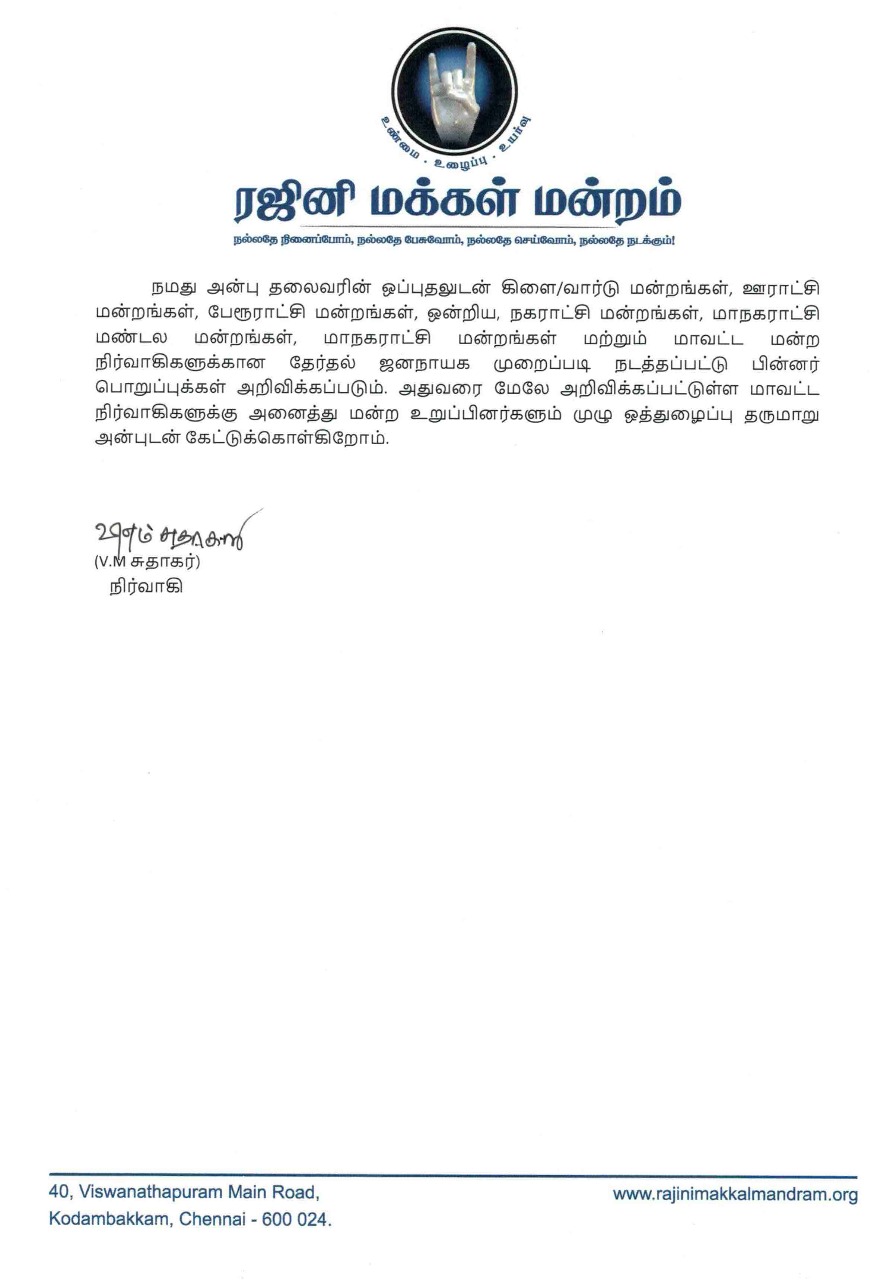 அதன்படி, தனது நம்பிக்கைக்கு பாத்திரமான சிலரைக் கொண்டு ஒரு குழுவை அமைத்துள்ள ரஜினி, அவர்களை கொண்டு ரசிகர் மக்கள் மன்ற நிர்வாகிகளை நியமித்து வருகிறார்.