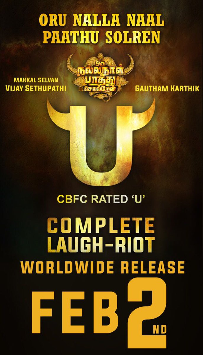 ஆறுமுககுமார் இயக்கத்தில் கெளதம் கார்த்திக், விஜய் சேதுபதி, காயத்ரி, ரமேஷ் திலக், நிகாரிகா உள்ளிட்ட பலர் நடிப்பில் உருவாகியுள்ள படம் ‘ஒரு நல்லநாள் பாத்து சொல்றேன்’. இப்படத்தின் அனைத்து பணிகளும் முடிவடைந்து, தணிக்கைக்கு விண்ணப்பித்தது படக்குழு.