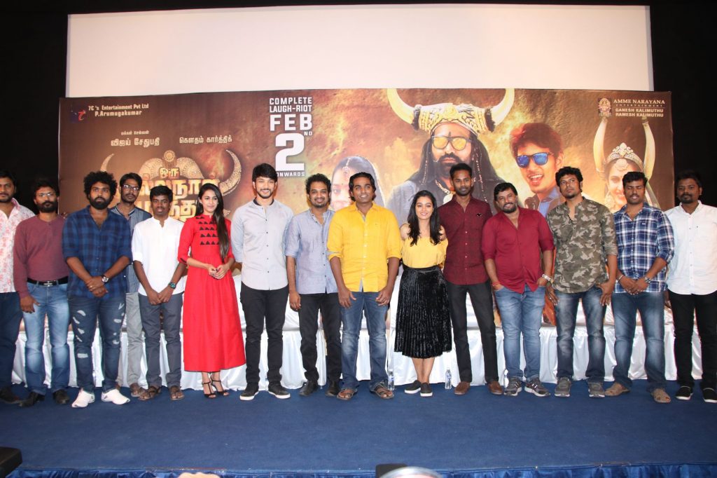 இந்த கதையின் மீதும், எங்கள் மீதும் நம்பிக்கை வைத்து ஃபைனான்ஸ் செய்திருக்கிறார்கள் அம்மே நாராயணா எண்டர்டெயின்மெண்ட். நான் இயல்பாக பழகுவது ஒரு சாதாரண விஷயம். ஆனால் விஸ்வரூப வளர்ச்சி அடைந்திருக்கும் விஜய் சேதுபதி இப்போதும் அதே மாதிரி பழகுவது தான் ரொம்ப பெரிய விஷயம். தன் கதாபாத்திரத்தை எப்படி மெறுகேற்றி செய்வது என்ற எண்ணம் உடையவர். அது தான் அவரின் வெற்றிக்கும் முக்கிய காரணம். படத்தில் கௌதம் கார்த்திக்குக்கு ஜோடினு சொன்னா அது டேனியல் தான். ரொம்பவே ஜாலியான ஹீரோ. படத்தில் ஒவ்வொரு செட்டும் முக்கியத்துவம் வாய்ந்தது. படத்தில் இசையமைப்பாளர் ஜஸ்டினுக்கு இசையமைக்க நல்ல ஸ்கோப் இருந்தது, அதை சிறப்பாக பயன்படுத்திக் கொண்டார். எல்லோரும் ரசிக்கும் ஒரு பொழுதுபோக்கு படமாக நிச்சயம் இருக்கும் என்றார் இயக்குனர் ஆறுமுக குமார்.