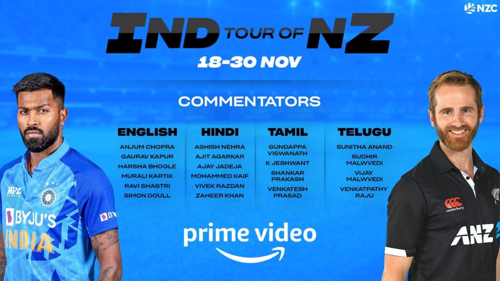 MUMBAI, India – 11 November, 2022 – India’s most-loved streaming service, Prime Video, amps up the excitement around the much-anticipated India men’s tour of New Zealand beginning 18th November, with a series of announcements that are sure to delight fans. India and New Zealand, both of whom have had a good T20I campaign in Australia, will face-off in a limited overs series featuring three T20s and 3 ODIs that will be played between Nov 18th and Nov 30th. The series will be LIVE and exclusive only on Prime Video, the official India territory rights holder to exclusively stream all men’s and women’s cricket matches played in New Zealand.