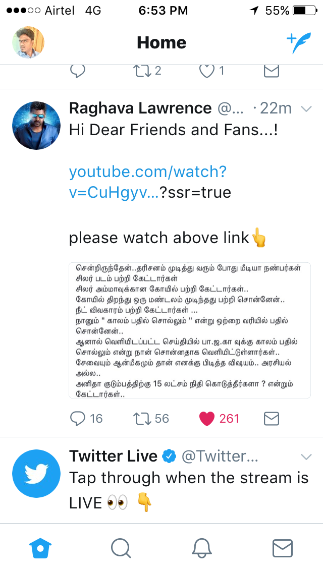நடிகர் ராகவா லாரன்ஸ் தமிழர்களுக்கு ஆதரவாக என்றும் குரல் கொடுப்பவர் ஏழைகளுக்கு மாற்றுதிறனாளிகளுக்கு ஓடோ ஓடி உதவி செய்து வருகிறார்