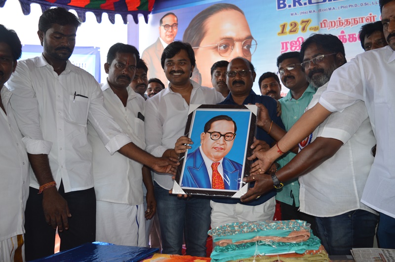 திருவள்ளூர்: இந்தியாவின் மாபெரும் சமூகப் போராளியும், மாமேதையும், ஒடுக்கப்பட்ட மக்களின் ஒப்பற்ற தலைவருமான அண்ணல் டாக்டர் அம்பேத்கரின் 127வது பிறந்த நாளையொட்டி, தமிழ்ப் புத்தாண்டு தினத்தில் இன்று அவருக்கு விழா எடுத்து கவுரவித்தனர் ரஜினி மக்கள் மன்றத்தினர்.