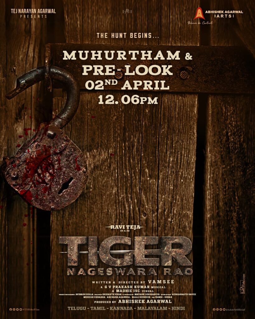 ‘டைகர் ’நாகேஸ்வரராவ் படத்தின் தொடக்க விழா, உகாதி தினமான ஏப்ரல் 2-ஆம் தேதியன்று மாதப்பூரில் உள்ள ஹெச் ஐ சி சி என்னுமிடத்தில் பிரம்மாண்டமான முறையில் நடைபெறுகிறது. இவ்விழாவில் ‘டைகர்’ படத்தின் பிரீ =லுக் மதியம் 12 மணியளவில் வெளியிடப்படுகிறது. பான் இந்தியா திரைப்படமான ‘தி காஷ்மீர் ஃபைல்ஸ்’ என்ற படத்தின் மூலம் பாலிவுட்டில் பிரம்மாண்டமாக அறிமுகமாகியிருக்கும் தயாரிப்பாளர் அபிஷேக் அகர்வாலின் கனவு படைப்பு இது.