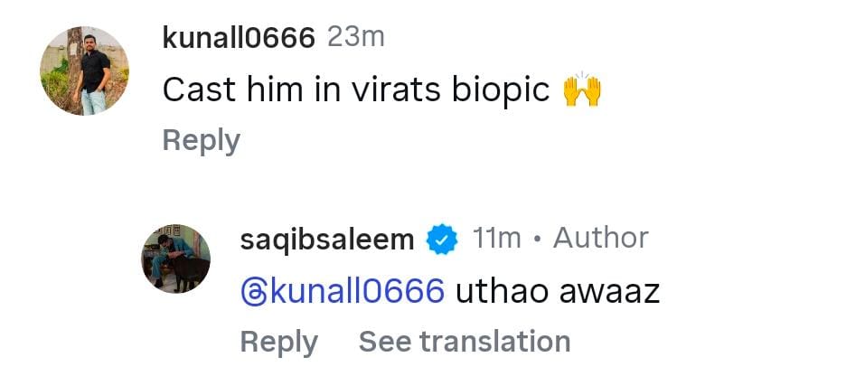 “Cast him in Virat’s biopic,” wrote a bold fan, clearly urging filmmakers to cast Saqib in King Kohli’s biopic. And the actor had a sweet reaction, wherein he urged his fans to just go for it! “Uthao awaaz,” he wrote! And a confident fan wrote, “You are Virat Kohli and your team RCB…your time will come!”