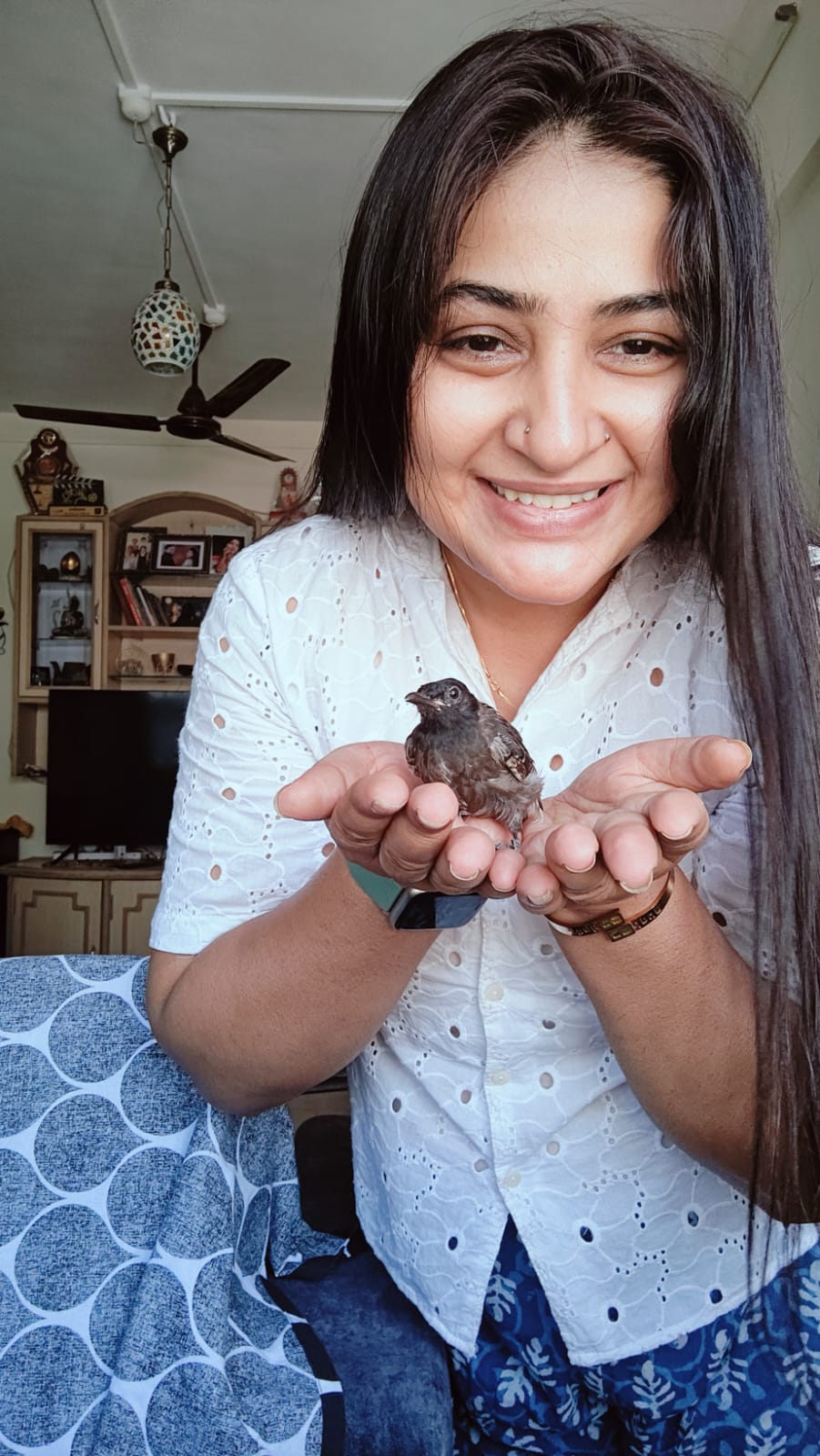 Sonal shares a special bond with a sparrow she fondly calls Chirpy. Despite the glamorous world she inhabits on screen, Sonal finds solace and companionship in the company of this little bird. Their friendship blossomed unexpectedly, but the bond they share is pure and heartwarming.