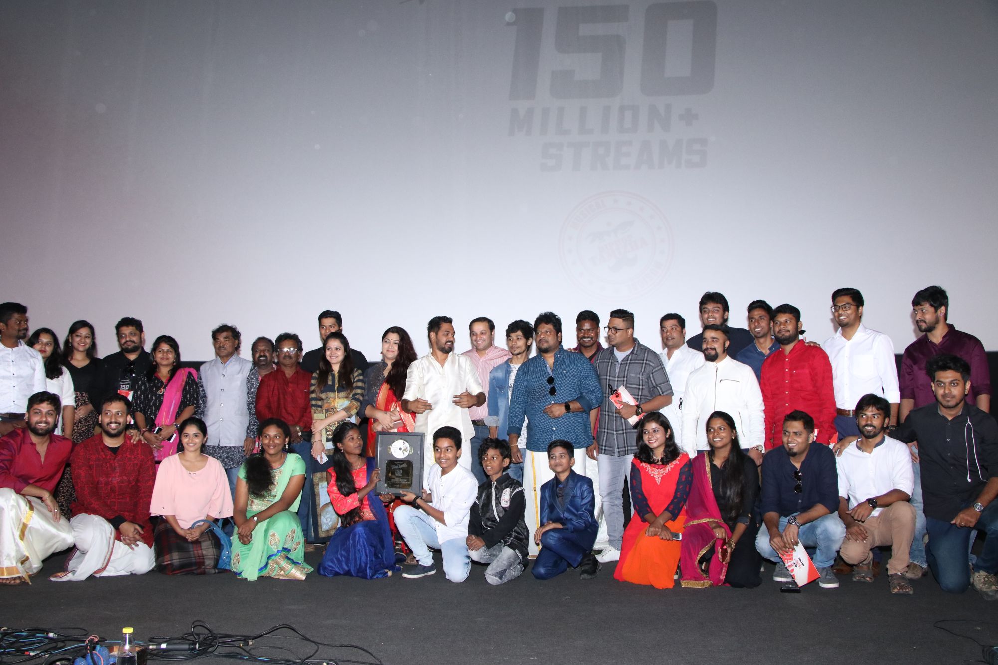அவ்னி சினிமேக்ஸ் சுந்தர் சி தயாரிப்பில் ஹிப் ஹாப் தமிழா ஆதி எழுதி, இசையமைத்து நடித்து மிகப்பெரிய வெற்றியை பெற்ற படம் ‘மீசைய முறுக்கு’. அந்த படத்தின் பாடல்கள் வெளியான நாள் முதலே ரசிகர்களிடம் பெரும் வரவேற்பை பெற்றது. பல்வேறு ஆன்லைன் தளங்களில் பல சாதனைகளை செய்து வந்தது. தற்போது அவற்றிற்கெல்லாம் சிகரம் வைத்தாற்போல 150 மில்லியன் பார்வைகளை கடந்திருக்கிறது. அந்த வெற்றிக்கு முக்கிய காரணமான இசைக்கலைஞர்களை கவுரவிக்க சென்னை சத்யம் சினிமாஸில் விழா நடைபெற்றது. விழாவில் தயாரிப்பாளர் குஷ்பூ, சத்யம் சினிமாஸ் தலைவர் ஸ்வரூப் ரெட்டி, திங்க் மியூசிக் துணை தலைவர் சந்தோஷ் குமார், பிரீத்தா ராமசாமி ஆகியோர் கலந்து கொண்டனர்.