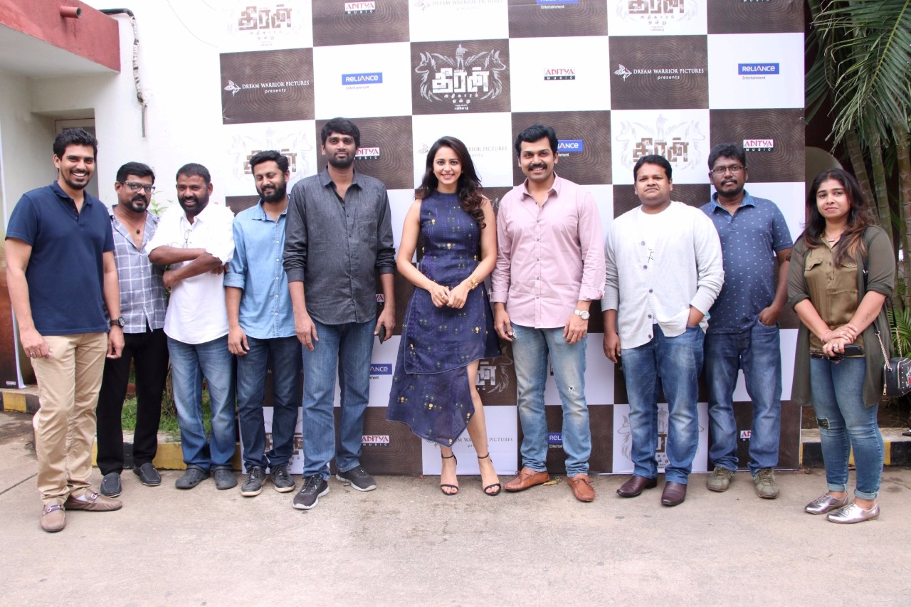 ட்ரீம் வாரியர் பிக்சர்ஸ் எஸ்.ஆர். பிரகாஷ் பாபு, எஸ்.ஆர். பிரபு தயாரிப்பில் உருவாகியுள்ள தீரன் அதிகாரம் ஒன்று திரைப்படத்தின் பத்திரிக்கையாளர் சந்திப்பு இன்று நடைபெற்றது இதில் கார்த்தி , தயாரிப்பாளர் எஸ்.ஆர். பிரபு , ரகுல் ப்ரீத் சிங் , இயக்குநர் H.வினோத் , ஜிப்ரான் , கலை இயக்குநர் கதிர் உள்ளிட்டோர் கலந்து கொண்டனர்.
