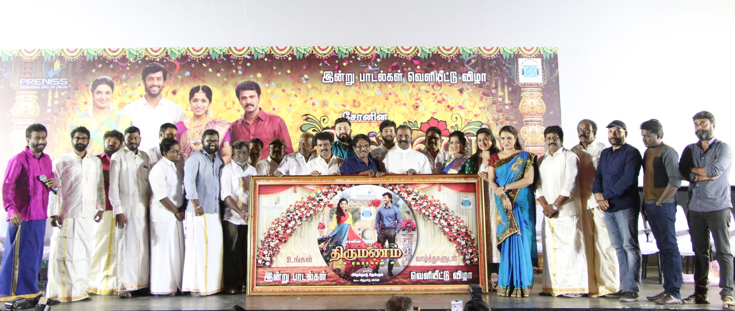 ’திருமணம்’ என்ற தலைப்புக்கு ஏற்றவாறு இசை நிகழ்ச்சி நடைபெற்ற கமலா திரையரங்கத்தை நேற்று பிரம்மாண்ட திருமண மண்டபமாகவே மாற்றிவிட்டார்கள். வாசலில் பிரம்மாண்டமான அலங்கார தூண்கள் இருக்க, சாலையில் இருந்து தியேட்டர் நுழை வாயில் வரை தென்னங்கீற்றுகள் இருக்க, வாழை மரம், மேல தாளம், படக்குழுவினர் அனைவரும் பட்டு புடவை, பட்டு வேட்டி சட்டை, பழைய காலத்து குழாய் ஒலிபெருக்கி, அதில் பழைய பாடல்கள் என்று பிரம்மாண்டமாகவும் அதே சமயம் பழமையான திருமண நிகழ்வை நம் கண் முன் நிறுத்தினார்கள்.