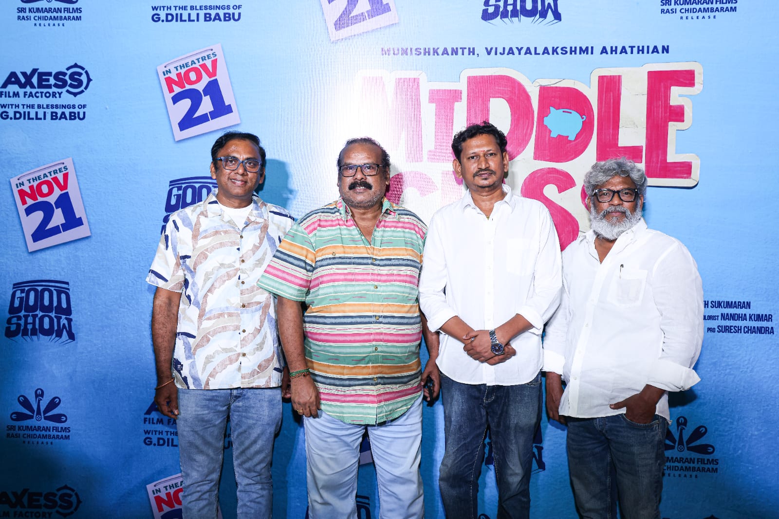 ஆக்சஸ் ஃபிலிம் ஃபேக்டரி மற்றும் குட் ஷோ நிறுவனங்கள் தயாரிக்கும் ‘மிடில் கிளாஸ்’ திரைப்படத்தை இயக்குநராக கிஷோர் முத்துராமலிங்கம் அறிமுகமாகியுள்ளார். முனீஷ்காந்த், விஜயலட்சுமி உள்ளிட்ட பலர் முக்கிய வேடங்களில் நடித்துள்ளனர். வரும் நவம்பர் 21 அன்று வெளியாகும் இந்தப் படத்தின் டிரெய்லர் வெளியீட்டு விழா சிறப்பாக நடைபெற்றது.