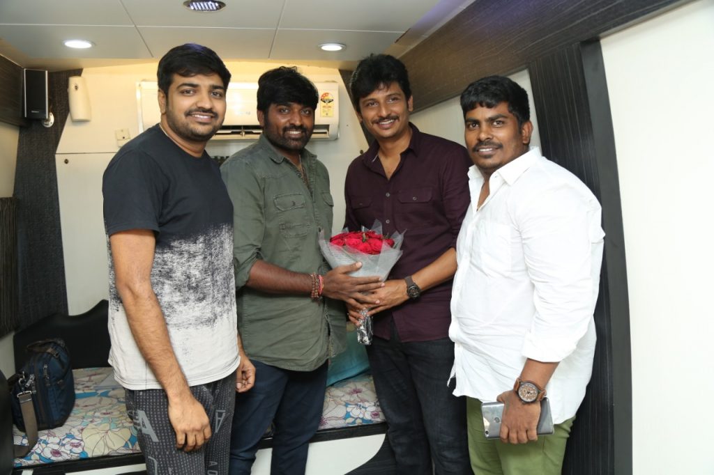 The Title Makkal Selvan was given to actor Vijaysethupathi, for his easy go nature with every individual starting from his fans to his colleagues. Despite of results, the star holds a great rapport with his directors, which urge them to work again with the star. As a sample, the star had a surprise visit today to the sets of director Rathina Siva’s next film, which features actor Jiiva as the lead.
