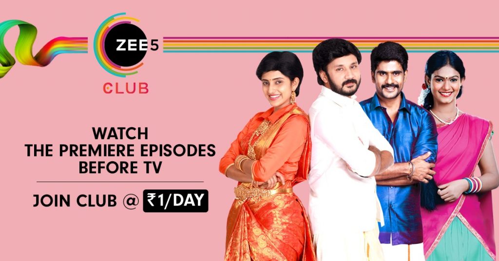 ஜீ 5 க்ளப்பின் சந்தாதாரர்கள் அனைவராலும், அவர்களின் அபிமான ஜீ தமிழ் நிகழ்ச்சிகளை, தொலைக்காட்சி ஒளிபரப்புக்கு முன்னரே கண்டு ரசிக்க முடியும்.
